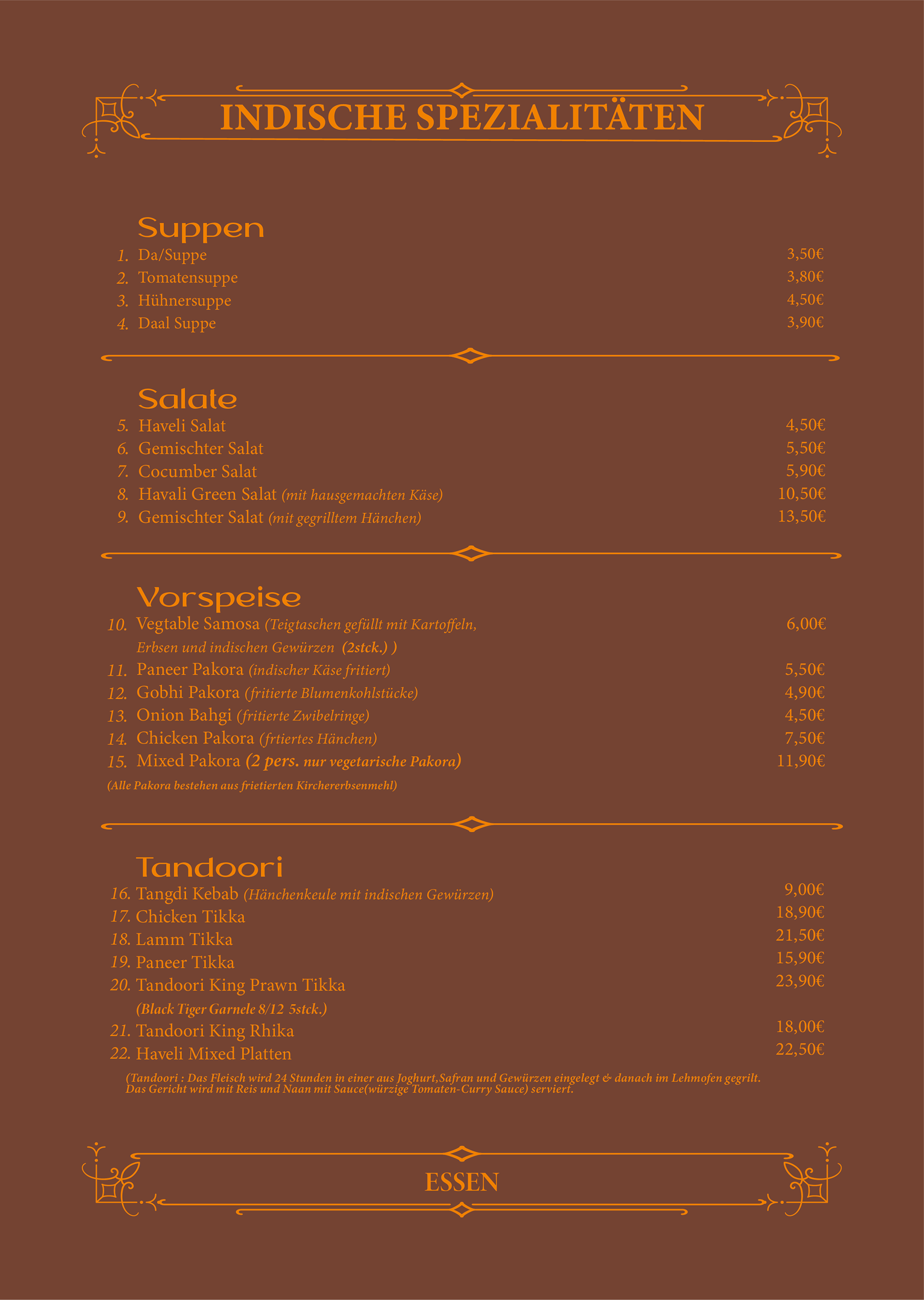 Für ein indisches Restaurant in Hamburg, entwickelte ich die vollständige Corporate Identity sowie das visuelle Erscheinungsbild. Dazu gehörten das Design der Speisekarte, sämtliche Grafiken und begleitende Visuals, die traditionelle indische Elemente mit einer modernen, klaren Gestaltung verbinden. Ziel war ein authentischer, einladender Markenauftritt mit hohem Wiedererkennungswert — vom ersten Eindruck bis zum Erlebnis vor Ort.